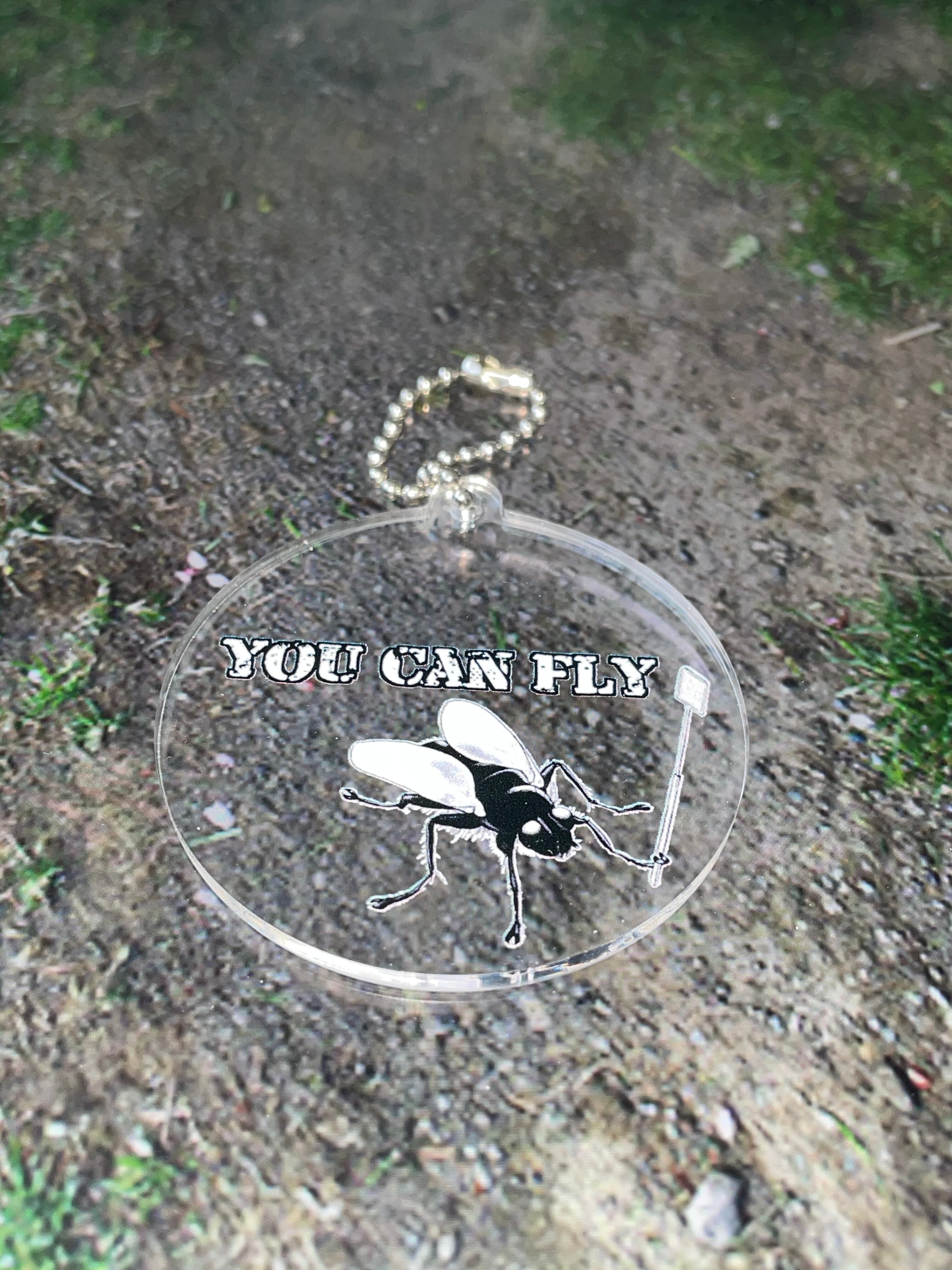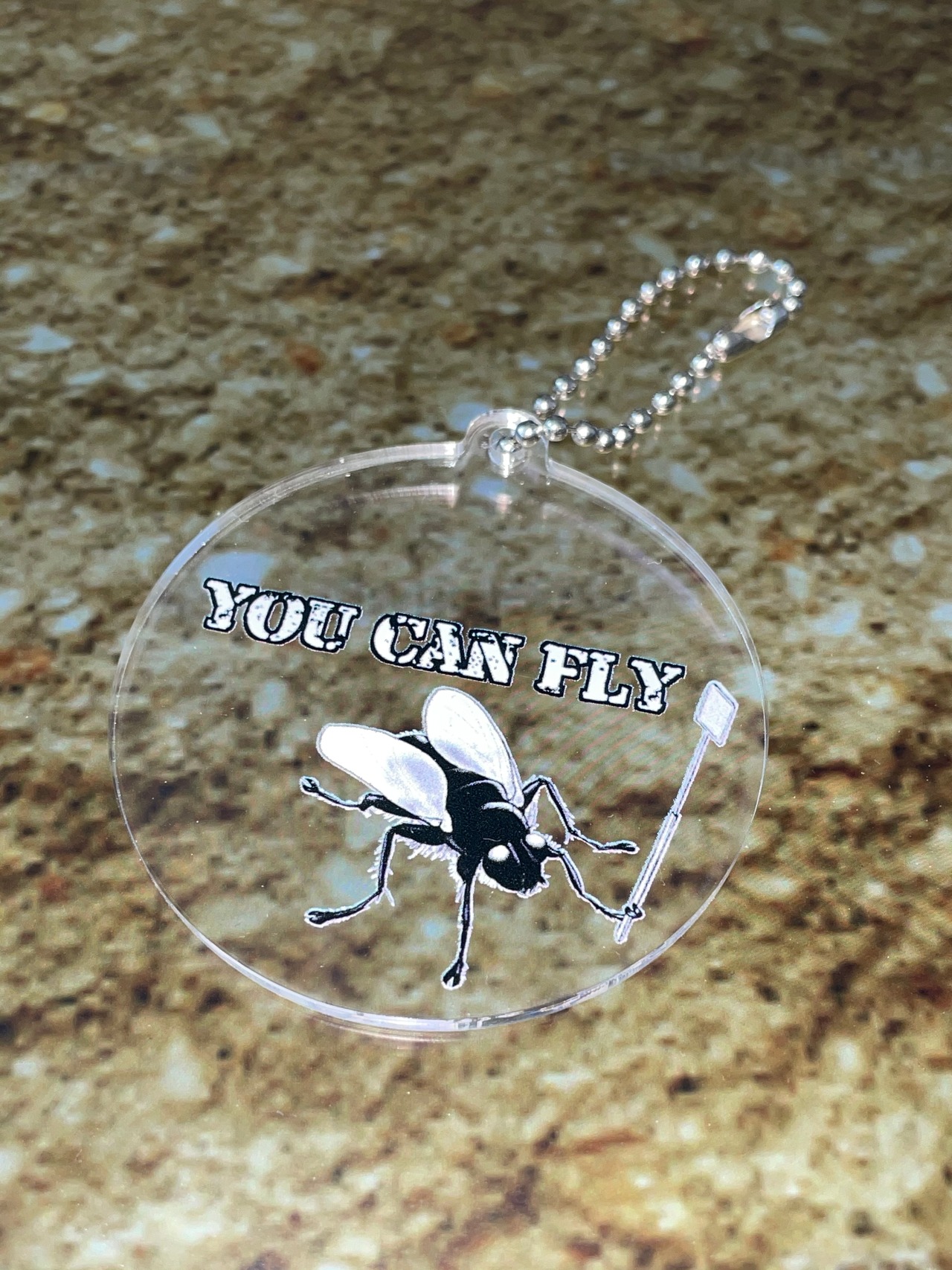 アクリルで透明ですが、イラストですし少し大きめなので本物のハエと間違えられる事はありません。